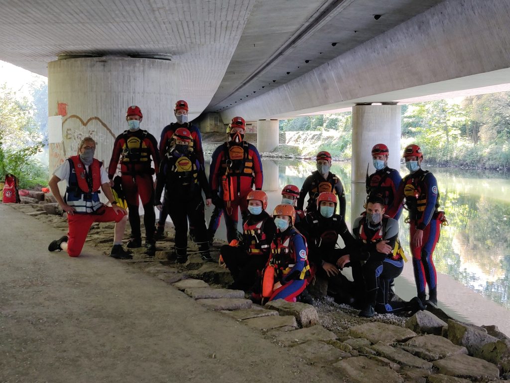 Zum Abschluss der Sommersaison 2020 trafen sich am 12.09. unsere Aktiven zu einem Fließwassertraining unterhalb der Autobahnbrücke A7, die in unmittelbarer Nähe zur Wasserrettungsstaion Filzingen, die Iller kreuzt.